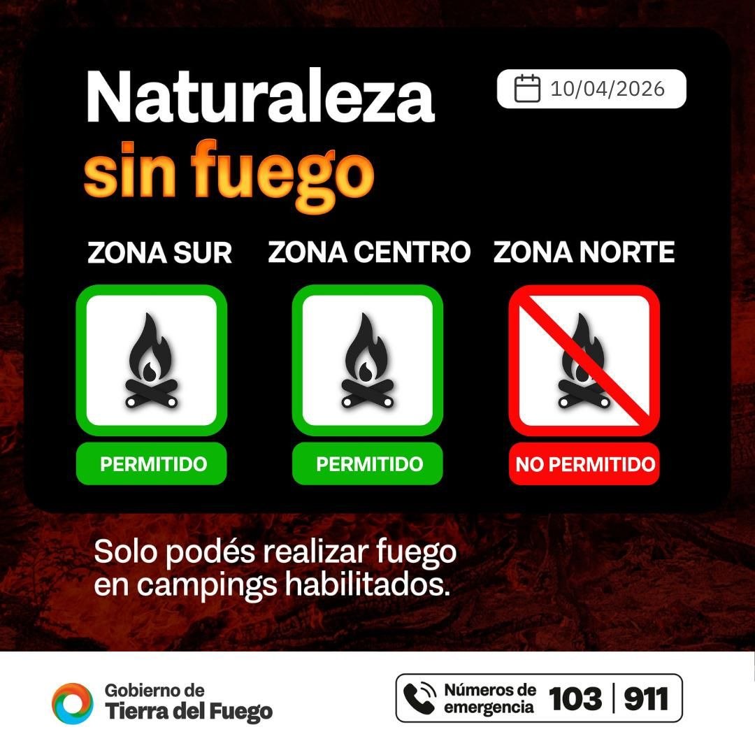 El día de hoy, en las ciudades de Tolhuin y Ushuaia, está permitido hacer fuego, únicamente en campings habilitados, mientras que en Río Grande está prohibido hacer fuego, aún en sitios habilitados.