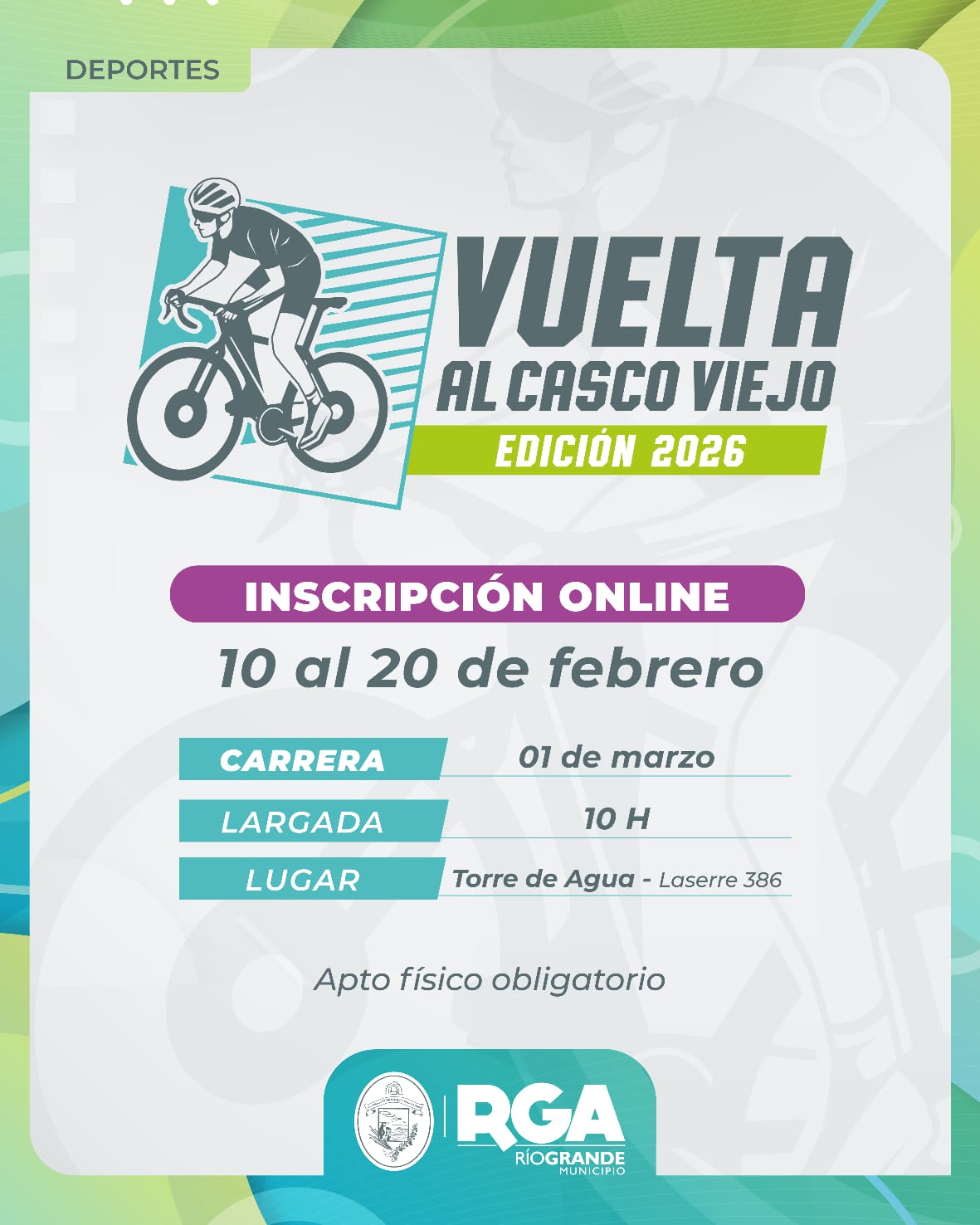 El Municipio de Río Grande, a través de la Subsecretaría de Deportes, llevará adelante el próximo 1 de marzo la sexta edición de la tradicional Vuelta al Casco Viejo, una propuesta deportiva que convoca año tras año a corredoras y corredores de toda la provincia.
