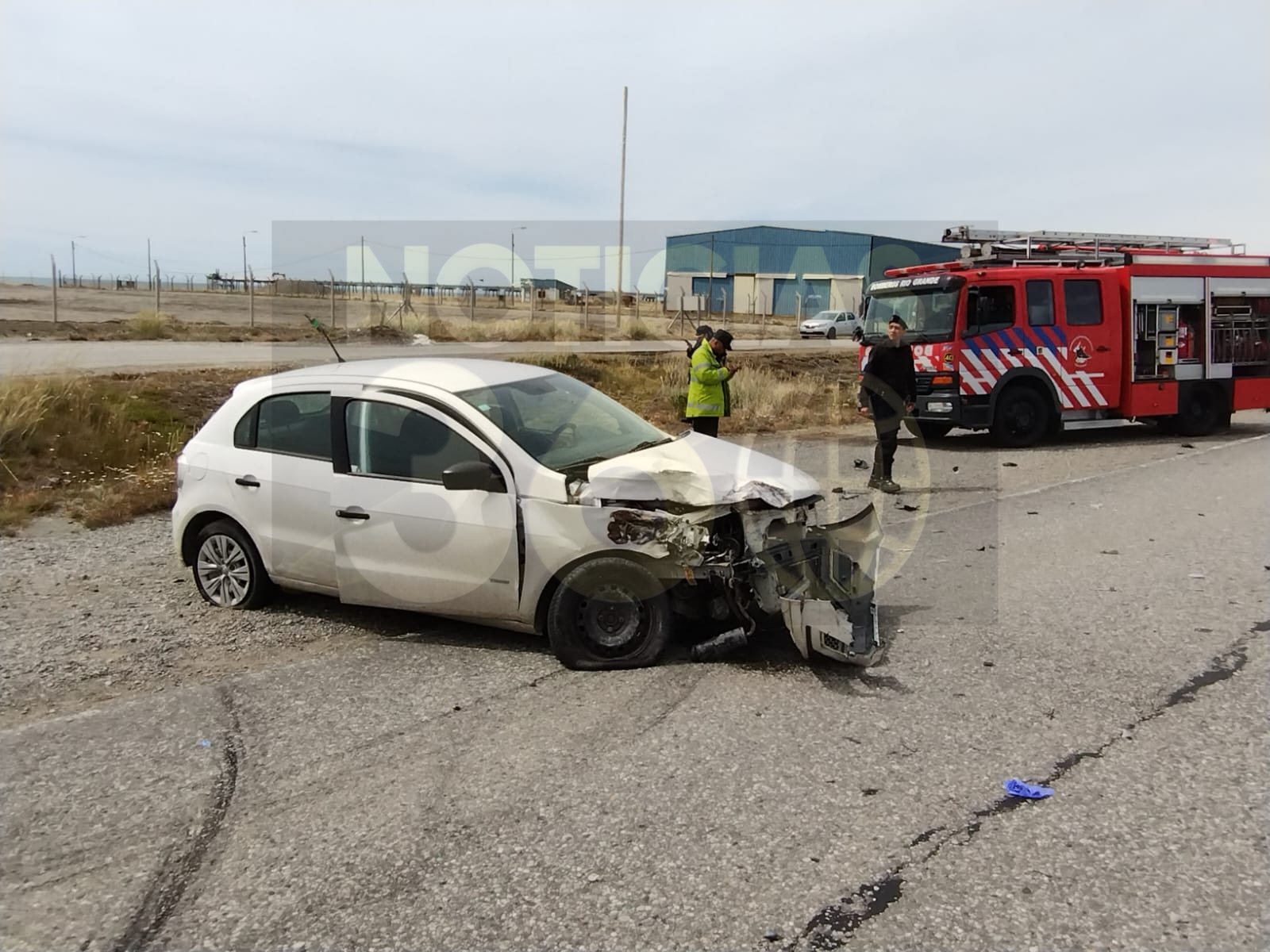 El Volkswagen Gol circulaba sobre la Ruta Nacional n° 3 en sentido sur norte, al intentar ingresar al depósito fiscal chocó prácticamente de frente con el camión que se desplazaba en sentido contrario.