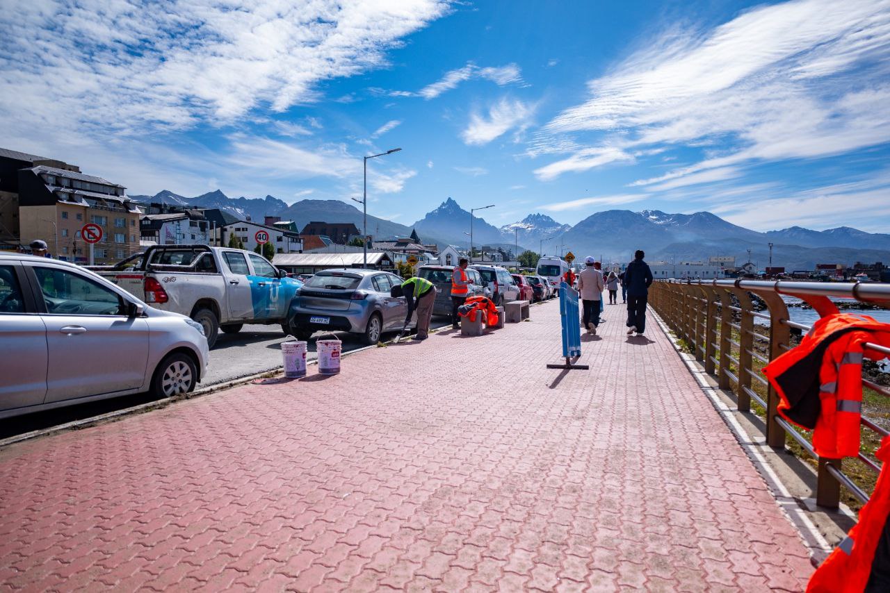 Asimismo, se efectuaron trabajos de pintado de veredas en una zona céntrica de la ciudad, particularmente en los alrededores del puerto, contribuyendo al ordenamiento y a una mejor señalización del espacio público.
