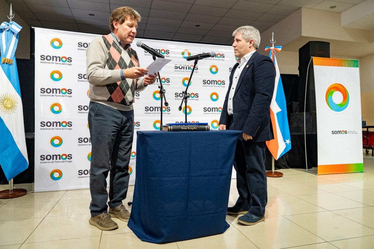 La ceremonia de jura del flamante Ministro Jefe de Gabinete estuvo encabezada por el Gobernador Gustavo Melella acompañado de la Vicegobernadora Mónica Urquiza. Se llevó a cabo en el salón del IPRA en Río Grande.