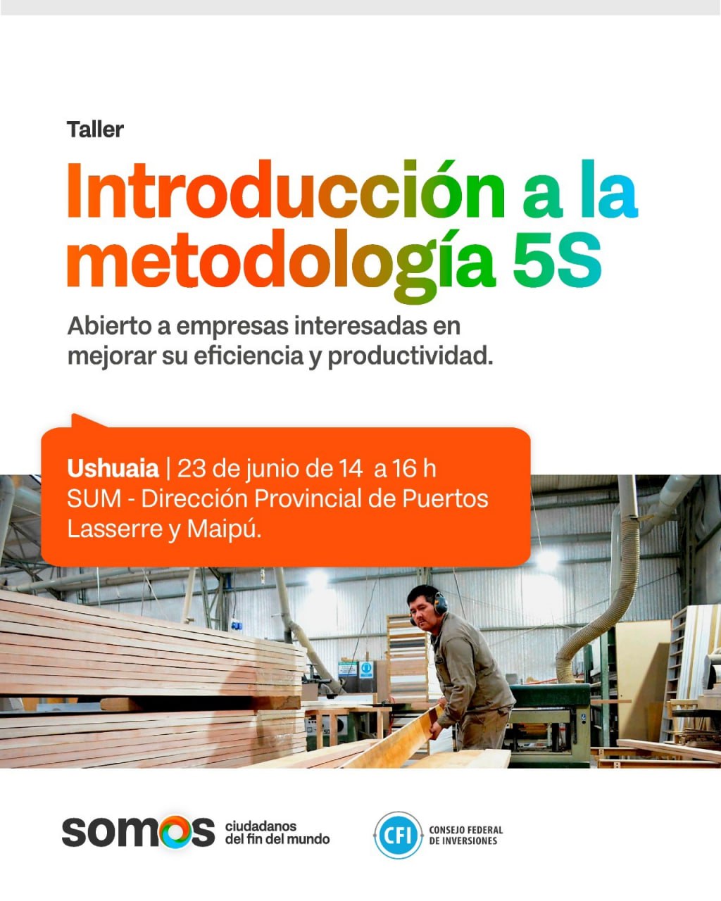 La Asistencia Técnica para la Mejora de Procesos Productivos, inició su implementación en el mes de abril y está dirigido a un grupo de empresas del sector de carpintería industrial y servicios de apoyo al sector industrial de Tierra del Fuego. Los profesionales a cargo del Programa, brindarán este primer taller abierto a las empresas participantes y a todas aquellas interesadas en mejorar la calidad de sus productos y servicios e incorporar herramientas y conocimientos para una gestión más eficiente y competitiva.