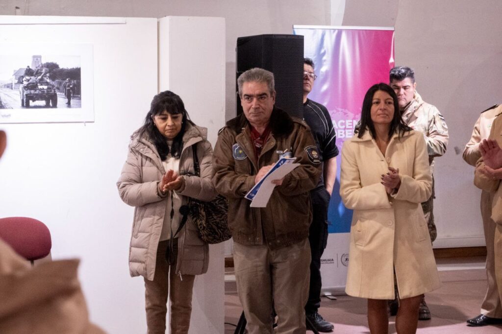 Estuvieron presentes funcionarios del Gabinete municipal, veteranos y veteranas de guerra, integrantes del SUTEF y vecinos y vecinas, quienes luego de la exposición mantuvieron una charla con Vernet y Gutierrez.