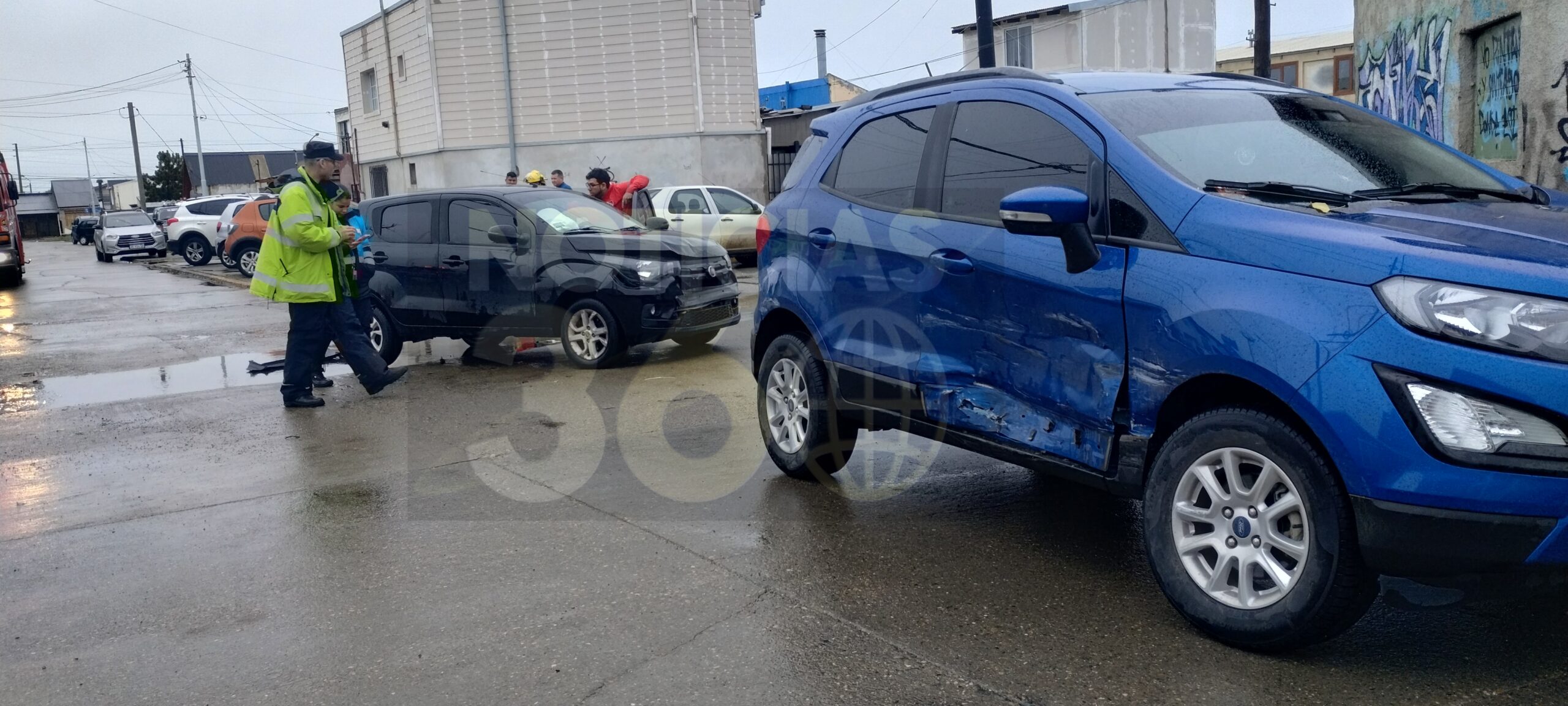 Se hizo presente personal policial de la División Científica para determinar las causas del accidente y establecer responsabilidades. La camioneta Ecosport que se movilizaba por la calle 22 de Mayo y recibió el choque por la puerta delantera del lateral derecho. El Fiat Mobi que se desplazaba por la calle Aeroposta Argentina quedó con importantes daños materiales en el paragolpes delantero.