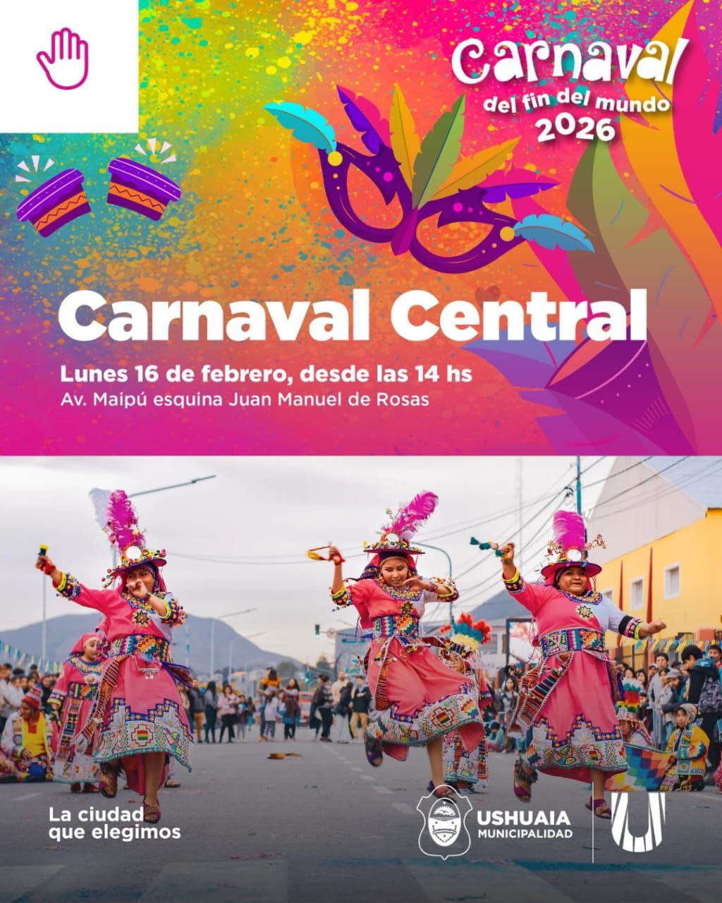 La Municipalidad de Ushuaia, a través de la Secretaría de Cultura y Educación, llevará adelante este lunes 16 y martes 17 de febrero a partir de las 14:00 horas en Av. Maipú y Juan Manuel de Rosas el “Carnaval Central”, parte del festejo popular del “Carnaval del Fin del Mundo”.