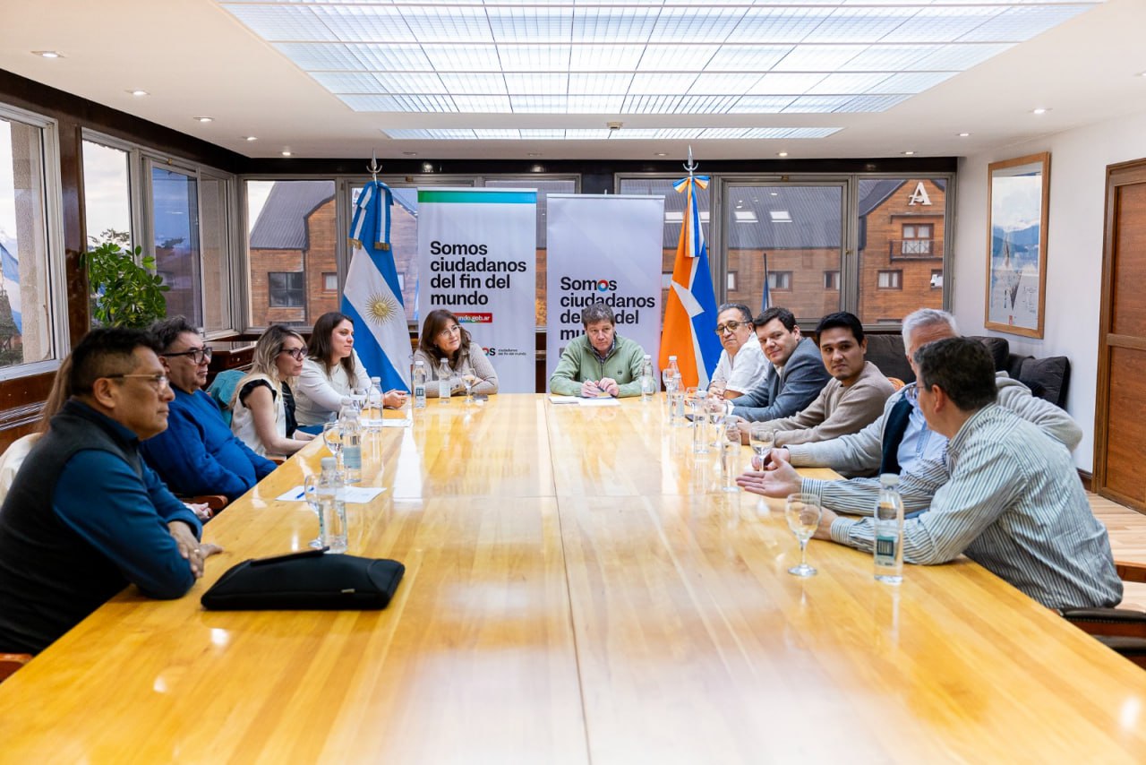 El Gobernador de Tierra del Fuego AIAS, Gustavo Melella, mantuvo un encuentro con representantes de Colegios y Consejos profesionales, quienes manifestaron su preocupación por un proyecto de ley nacional para desregular sus actividades. Estuvo acompañado de la Ministra de Obras y Servicios Públicos, Gabriela Castillo.