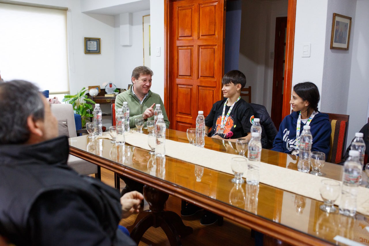 El Gobernador de Tierra del Fuego AIAS, Gustavo Melella, acompañado de la Secretaria de Políticas para las Juventudes, Ivana Olariaga, recibió este jueves en Río Grande a jóvenes fueguinos que tuvieron una destacada participación en juegos urbanos sudamericanos.