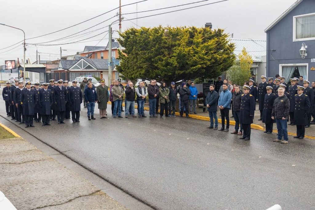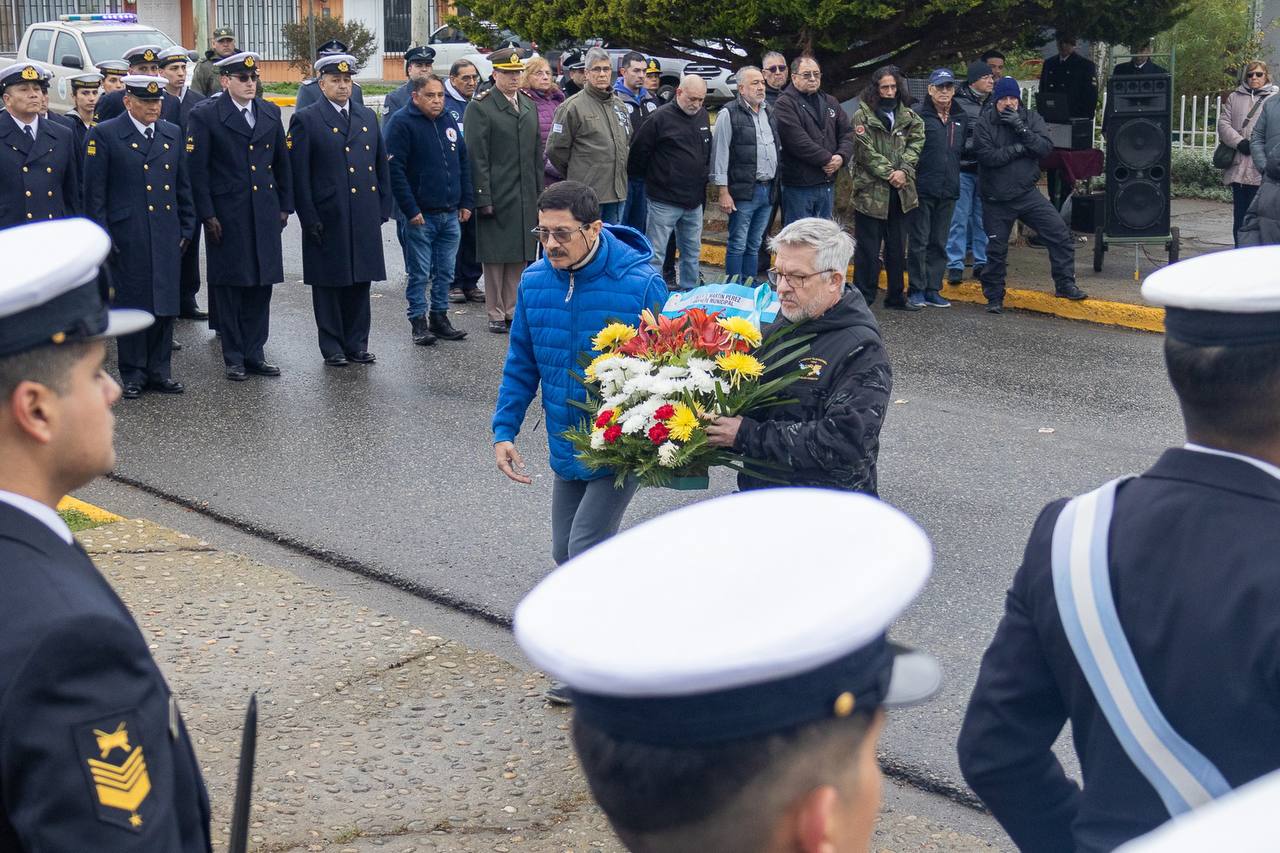 El Capitán de Navío IM Alfredo Banegas, Comandante de la Brigada de Infantería de Marina Austral, presidió el acto. Durante el mismo se recordó el hundimiento del crucero que resultó en la pérdida de 323 de sus 1093 tripulantes, convirtiéndolo en el único barco hundido por un submarino nuclear durante la Guerra de Malvinas.