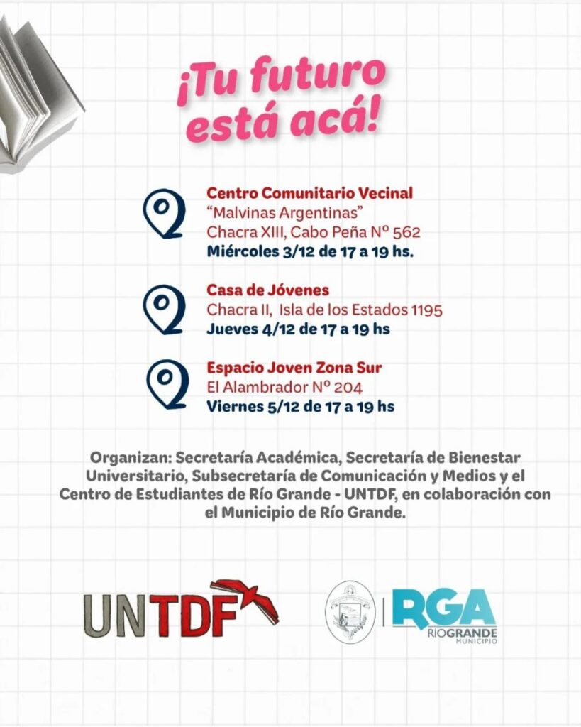 El Municipio de Río Grande y la Universidad Nacional de Tierra del Fuego (UNTDF) impulsan una nueva propuesta conjunta para acompañar a las juventudes y a toda la comunidad en el camino hacia la educación superior. A través de “La Uni en los barrios”, equipos de la UNTDF se trasladarán a distintos puntos de la ciudad para brindar información, asesoramiento y acompañamiento personalizado.