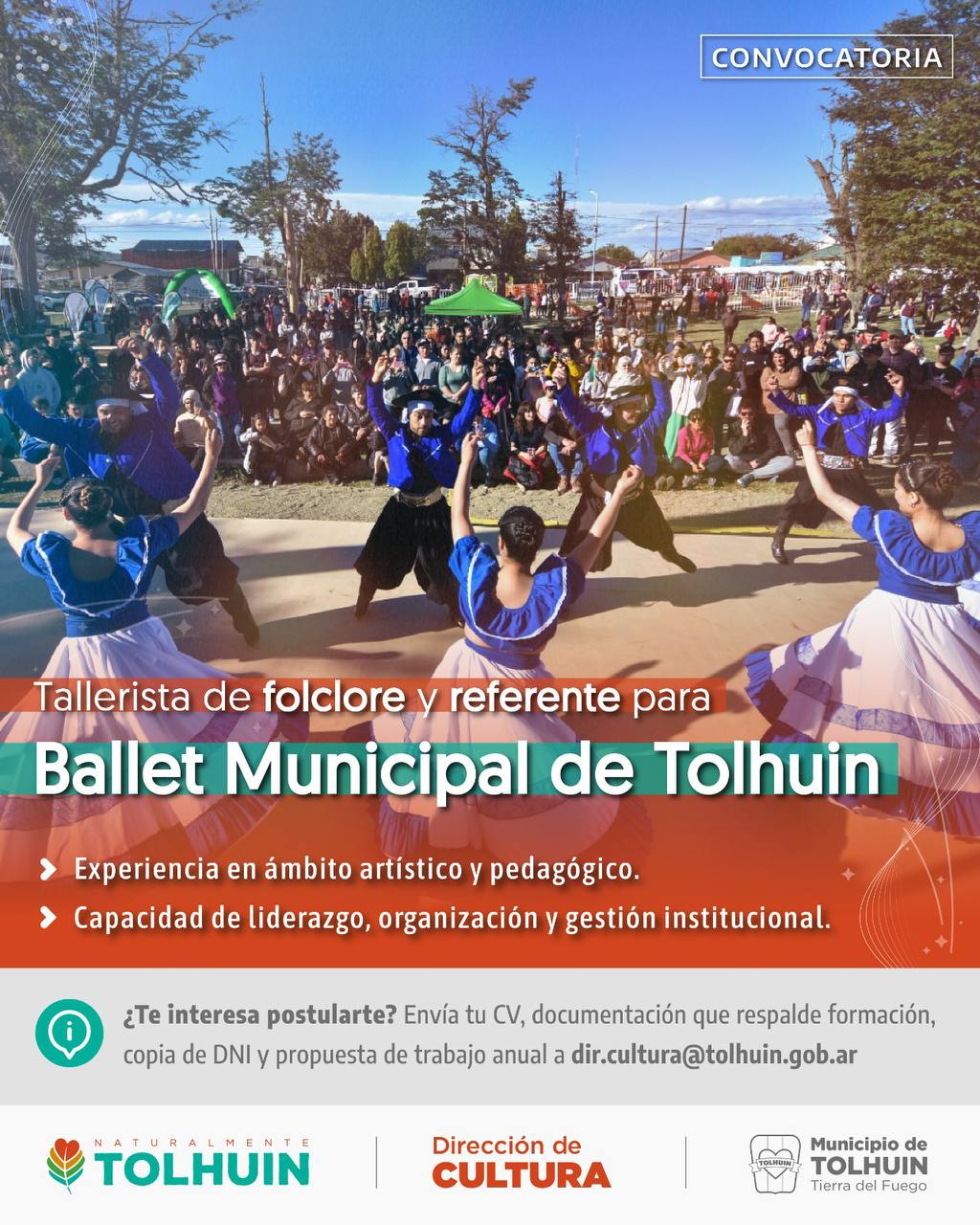 El Municipio de Tolhuin, mediante la Dirección de Cultura, lanzó una convocatoria destinada a cubrir el puesto de Tallerista de Folclore y Referente del Ballet Municipal de Tolhuin.