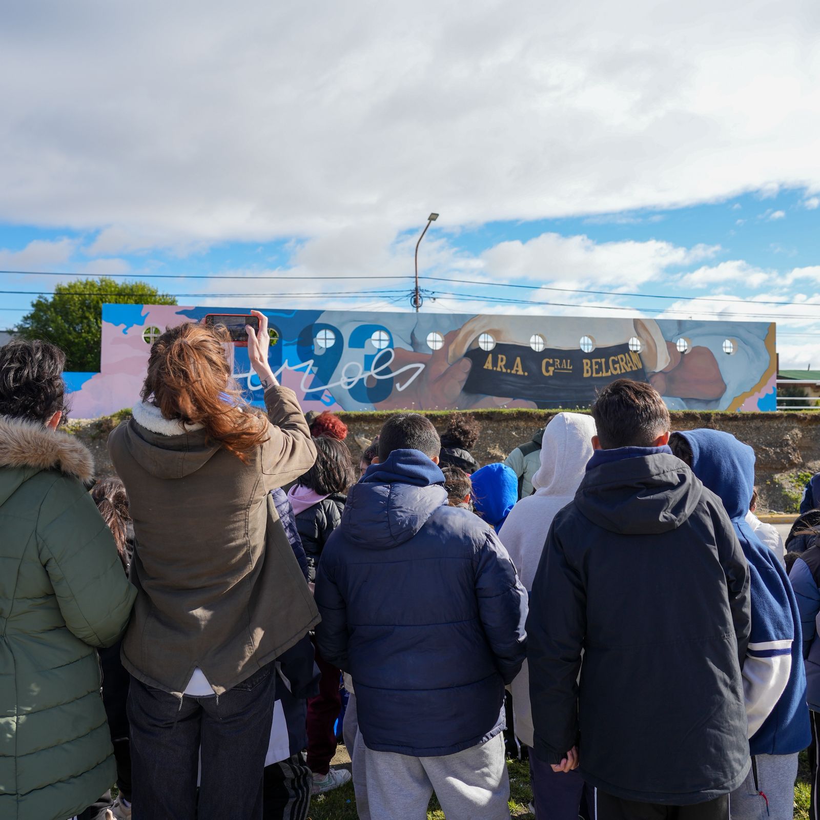 La intervención estuvo a cargo de artistas del Museo Municipal “Virginia Choquintel”, quienes trabajaron de manera conjunta con el Centro de Veteranos, incorporando material histórico y testimonial aportado por la institución. A través de los murales, se reconstruyen escenas del hundimiento del ARA General Belgrano, el regreso de los sobrevivientes al continente, así como historias particulares de tripulantes durante el conflicto.