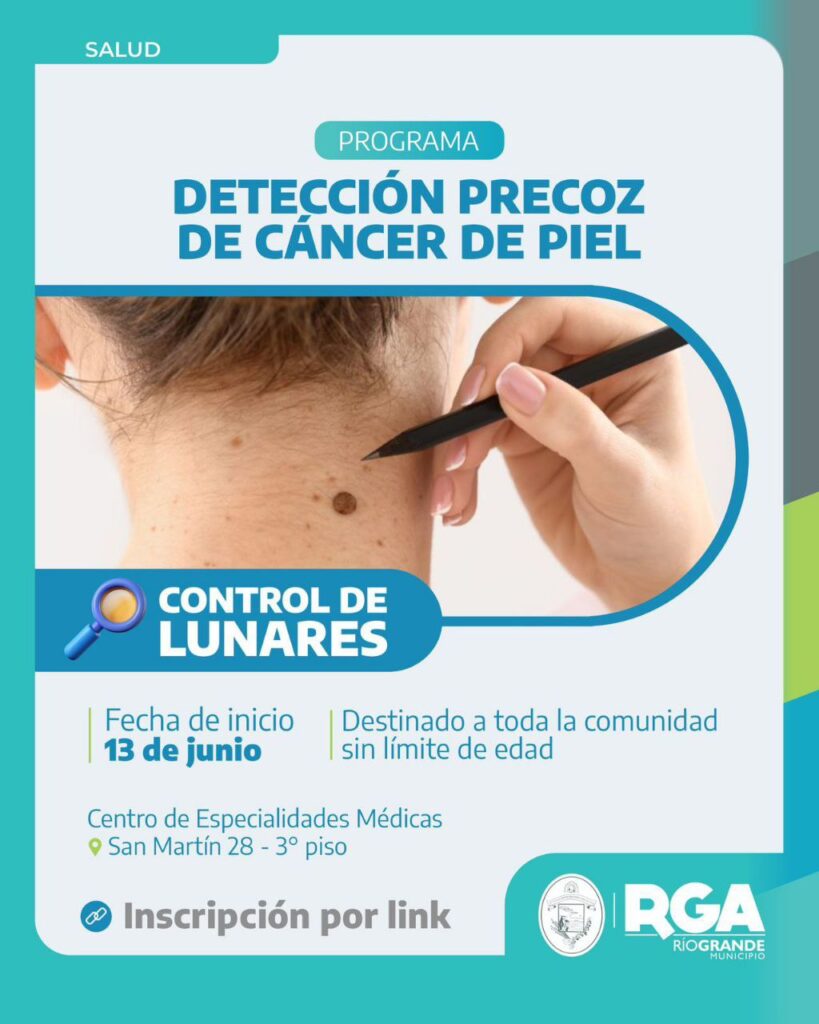 En el marco del Día Mundial del Cáncer de Piel, que se conmemora el 13 de junio, el Municipio pone en marcha el Programa Municipal de Prevención del Cáncer de Piel: Control de Lunares. Esta iniciativa está destinada a toda la comunidad, sin límite de edad, cuenten o no con obra social. Tiene como objetivo principal promover la concientización, la prevención y el diagnóstico temprano del melanoma, el tipo de cáncer de piel más agresivo y con mayor índice de mortalidad.