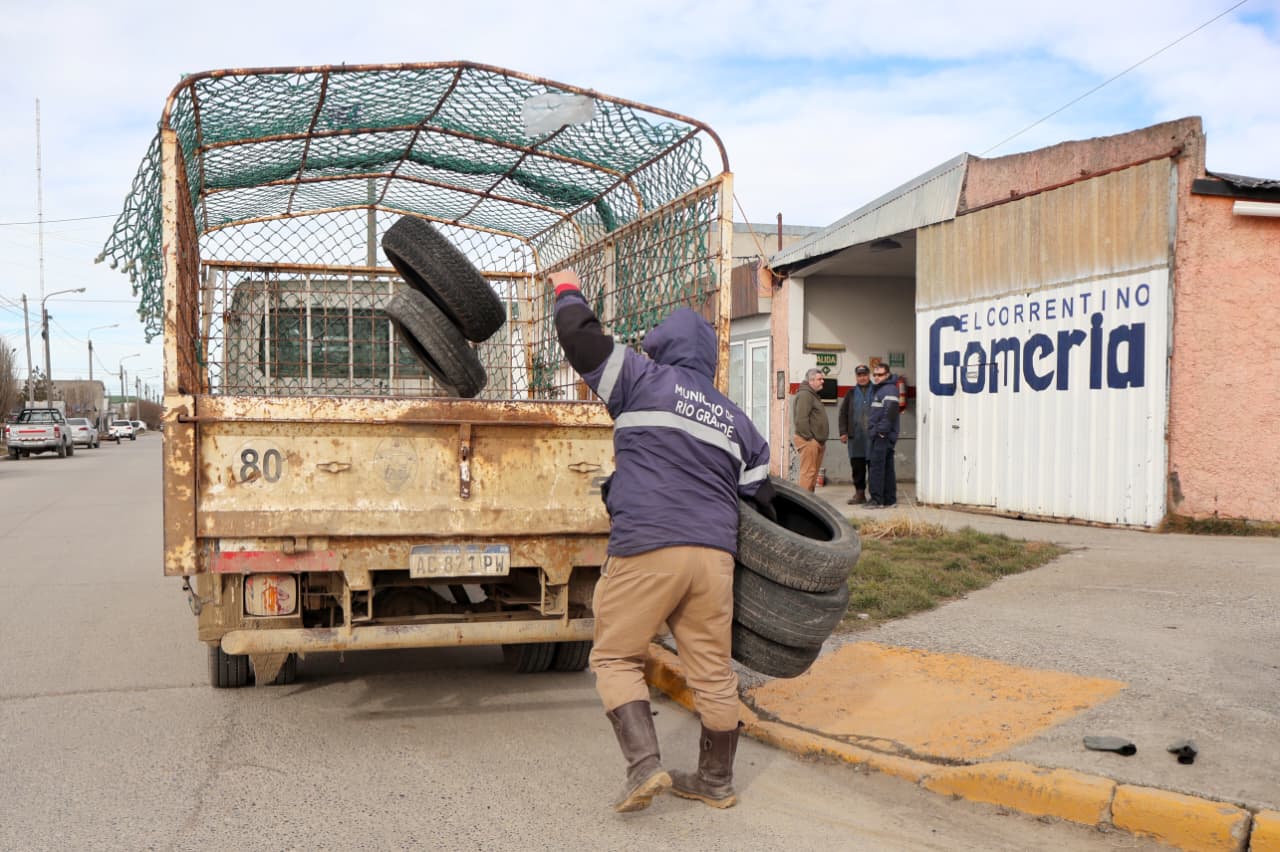 El Municipio de Río Grande realiza una recolección diferenciada de cubiertas en desuso en las gomerías de nuestra ciudad en pos de que reciban el tratamiento adecuado conforme a lo establecido por la Resolución N.° 523/2023, dicha tarea es la trituración de las mismas para ser enviadas al continente.