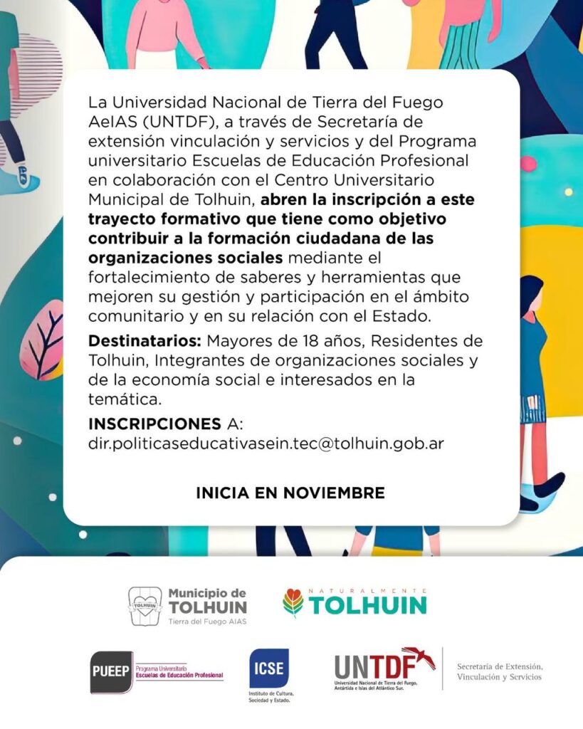 Las inscripciones y consultas se realizan a través del correo dir.politicaseducativasein.tec@tolhuin.gob.ar. El curso comenzará en noviembre y promete ser un nuevo punto de encuentro entre la educación pública, la comunidad y la construcción colectiva de un Tolhuin que sigue creciendo.