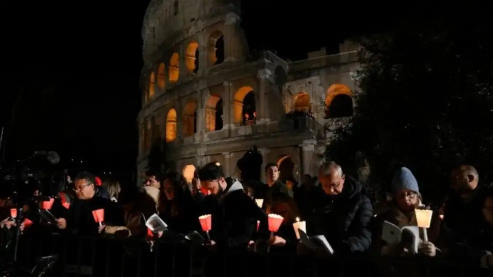 La celebración del Viacrucis en el Coliseo, uno de los momentos más esperados de la Semana Santa católica, será de acceso libre. Miles de fieles se congregarán en las inmediaciones del monumento, donde se instalarán pantallas para seguir el recorrido. La tradición entre los asistentes es encender antorchas y velas al inicio del rito, generando un clima de recogimiento y solemnidad.