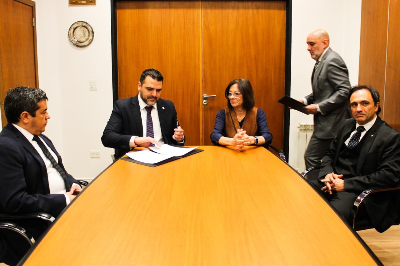 La rúbrica del convenio, que se llevó adelante este lunes 12 de mayo en la sede del Superior Tribunal de Justicia, estuvo a cargo de la Presidenta del Superior Tribunal de Justicia, Dra. María del Carmen Battaini y del Intendente de la ciudad de Ushuaia, Walter Vuoto.