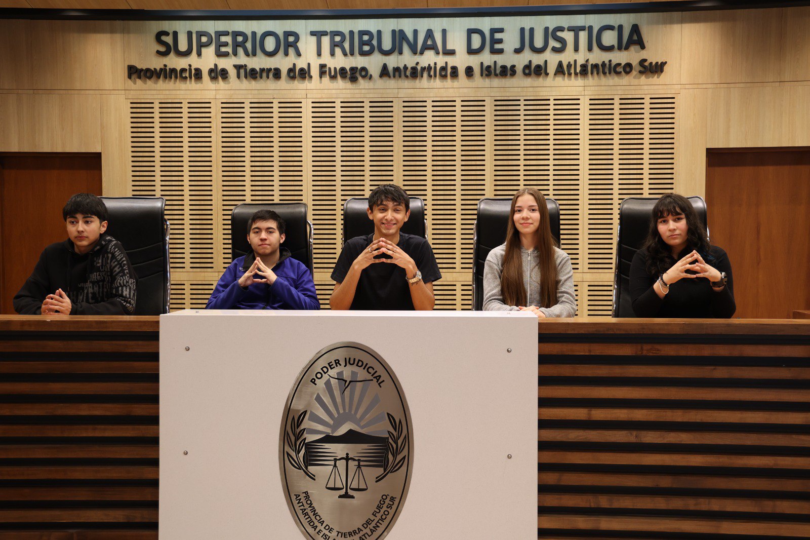 En esta oportunidad, el alumnado fue recibido por la Presidenta del Superior Tribunal de Justicia, Dra. María del Carmen Battaini; el Vicepresidente, Dr. Gonzalo Sagastume; el Defensor ante el STJ, Dr. Jesús Gonzalez Saber y el Fiscal ante el STJ, Dr. Eduardo Urquiza.