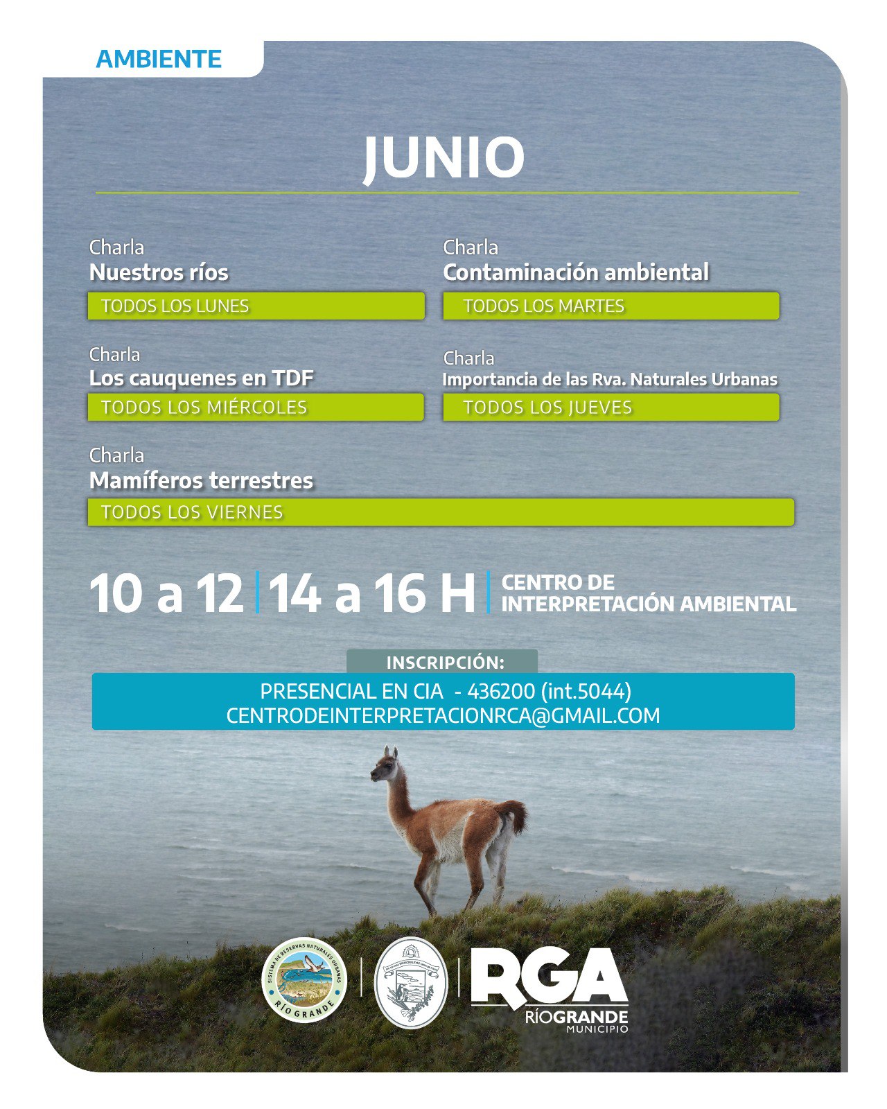 Quienes se quieran sumar a las actividades, se deben inscribir de forma presencial en el CIA o mediante el correo electrónico: centrodeinterpretacionrca@gmail.com. Para más información pueden comunicarse al teléfono 436200, Interno 5044.