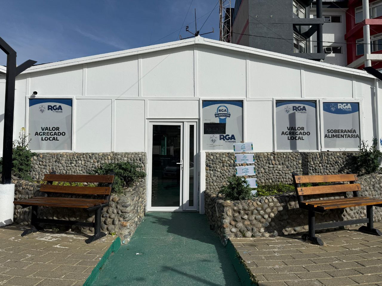 En el espacio se ofrecen otros productos de la marca RGA Alimentos, como tomates, ajos y pollos, además de alimentos provenientes de productores locales, lo que permite ampliar la oferta y fortalecer el circuito productivo de Río Grande.