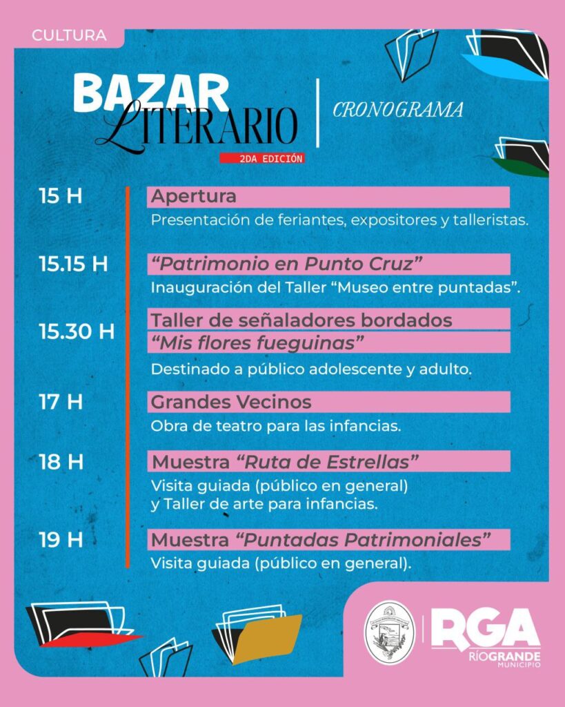El Municipio de Río Grande, a través de la Subsecretaría de Cultura, invita a vecinos y vecinas a participar de la 2° edición de “Bazar Literario” que se desarrollará el sábado 13 de diciembre, de 15 a 20 horas, en el Museo Municipal “Virginia Choquintel”.