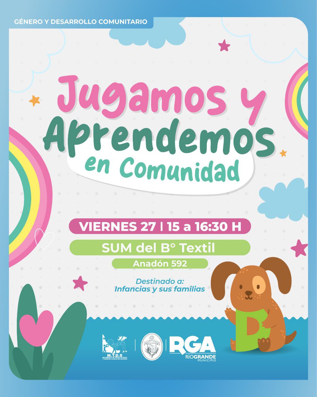 En el marco de las políticas públicas orientadas a la promoción y protección de los derechos de las infancias y adolescencias, el Municipio de Río Grande, a través de la Secretaría de Género y Desarrollo Comunitario, pone en marcha nuevamente las jornadas “Jugamos y Aprendemos en Comunidad”.