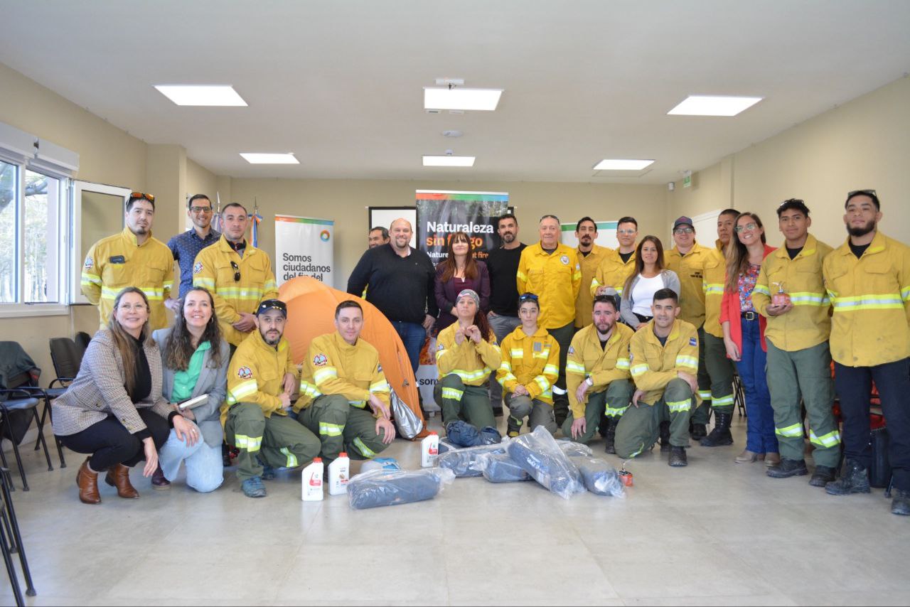 Brigadistas recibieron bolsas de dormir, carpas, calentadores portátiles y lubricantes para las motosierras y motobombas. El acto estuvo encabezado por la Ministra de Producción y Ambiente, Karina Fernández, junto a la secretaria de Ambiente, Andrea Bianchi y se desarrolló en la sede del INFUETUR de Ushuaia.