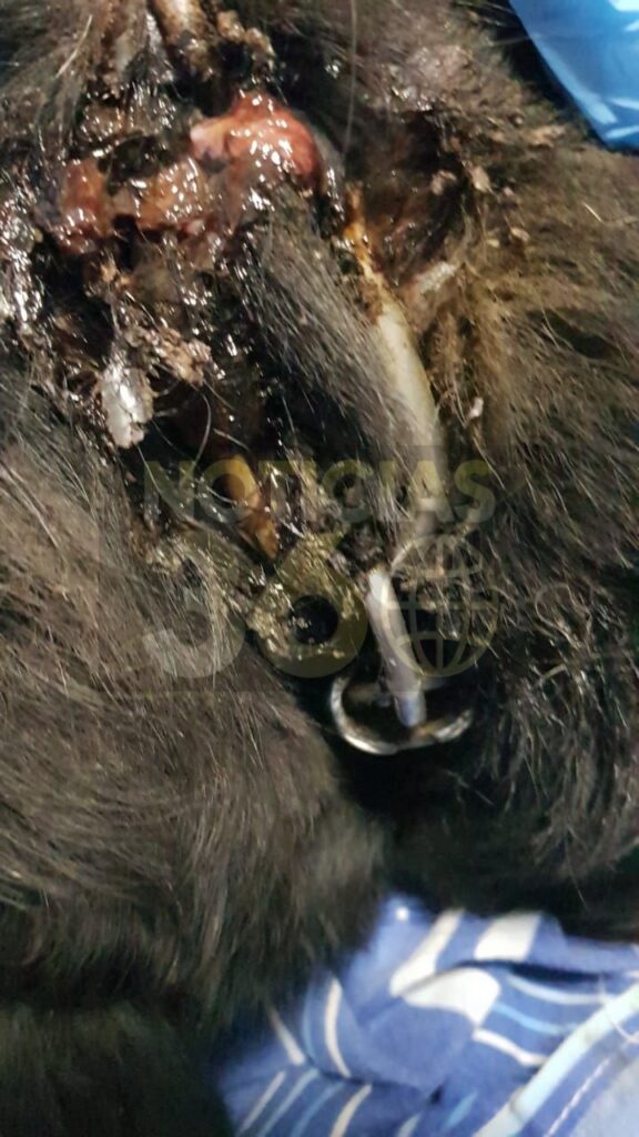 Los eslabones de cadenas que usaban de collar, se había encarnado es las carnes de los animales por lo que tuvieron que ser intervenidos quirúrgicamente.