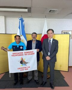 En un acto significativo, la Asociación Bomberos Voluntarios Río Grande y la Embajada de Japón en Argentina firmaron un contrato de donación para la provisión de un autobomba valorado en U$s 47.303. Este importante acuerdo se llevó a cabo en la Ciudad Autónoma de Buenos Aires, con la presencia del Sr. Lombardo Pascual y el Sr. Mateluna Gustavo Secretario, representantes de la Asociación Bomberos Voluntarios Río Grande, y el Sr. Embajador D. Yamauchi, en representación de la Embajada de Japón.