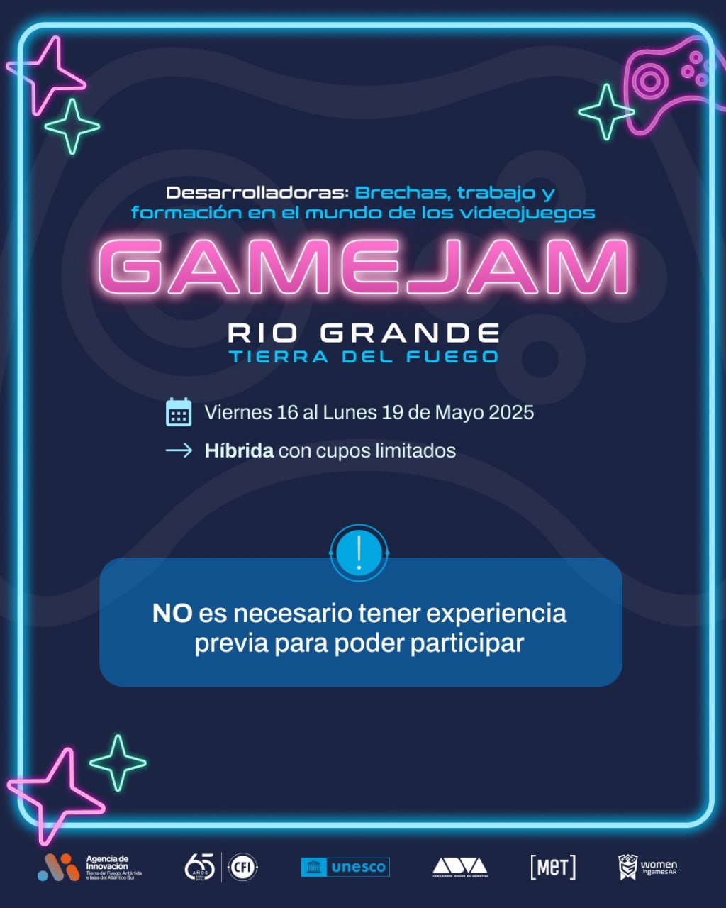 La Agencia de Innovación de Tierra del Fuego, el CFI y la UNESCO organizan la Game Jam Desarrolladoras, una iniciativa para reducir la brecha de género en la industria de los videojuegos, destinado a mujeres y diversidades mayores de edad.