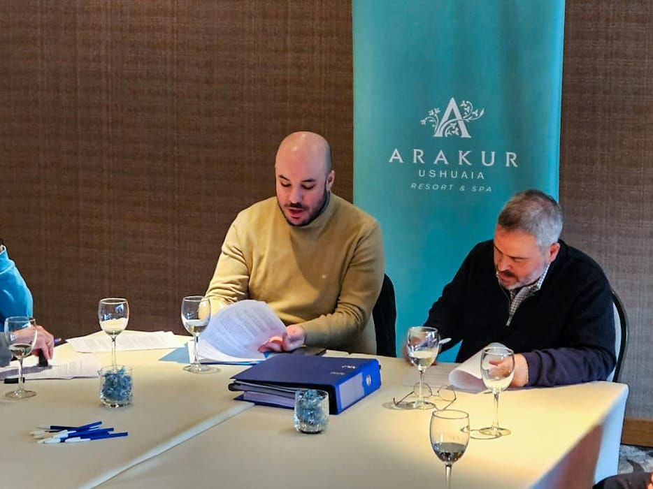 El encuentro tuvo lugar en el hotel, donde el secretario de Gobierno de la Municipalidad, César Molina junto a la subsecretaria de Seguridad Urbana, Nancy Jorducha, la gerente apoderada de la empresa, Andrea Compare y representantes de los distintos organismos que integran la Comisión de Auxilio firmaron el convenio que incorpora al Arakur, con el objetivo de que pueda ayudar de manera financiera a la incorporación de equipamiento.