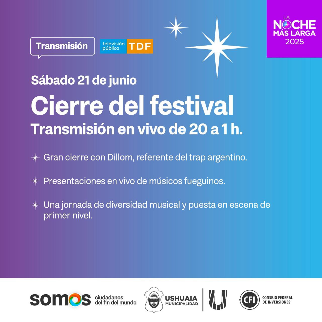 Una noche imperdible para cerrar esta gran fiesta cultural desde el Fin del Mundo.