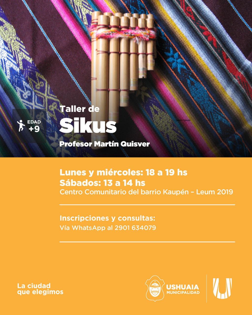 La Secretaría de Cultura y Educación de la Municipalidad de Ushuaia informa a la comunidad que se encuentran abiertas las inscripciones al Taller de Sikus a dictarse en el Centro Comunitario del Barrio Kaupén.
