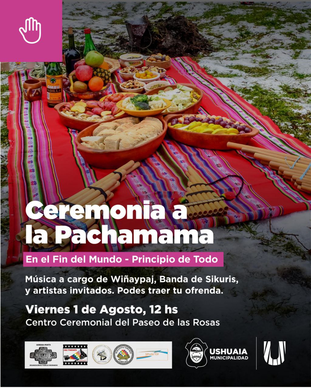 La iniciativa, que es organizada por Ushuaia-Manta y cuenta con el acompañamiento municipal, celebrará la costumbre ancestral en gratitud a la tierra realizada por los pueblos nativos de América Latina. Durante la ceremonia habrá presentaciones musicales a cargo de Wiñaypaj, Banda de Sikuris y artistas invitados, así como un espacio de ofrendas donde las y los asistentes podrán llevar frutas, legumbres, verduras, bebidas y tabaco para la Madre Tierra.