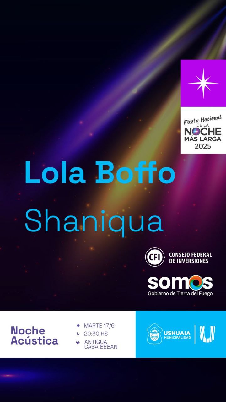 Belén Molina, secretaria de Cultura y Educación, recalcó que “continuando con las diversas noches de este gran festejo popular que el intendente Walter Vuoto ha potenciado y ampliado desde su gestión, estamos muy contentos de poder contar con una obra teatral de trayectoria internacional en nuestra ciudad, así como una Noche Acústica con lo mejor del talento fueguino”.
