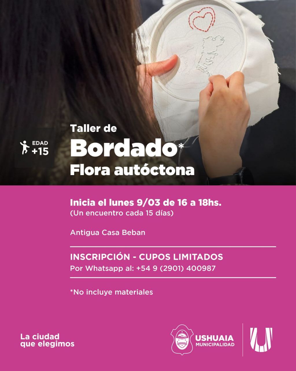 Las actividades abarcarán el Taller de Bordado “Flora Autóctona” que dará comienzo el lunes 9 de marzo de 16:00 a 18:00 horas en la Antigua Casa Beban, contando con encuentros a cargo de la profesora Yamila Freidas. Así también, junto a la profesora Freidas, se brindará el Taller de Cerámica en la Casa de la Cultura Enriqueta Gastelmendi, contando con dos grupos: el primero dará inicio el martes 10 cursando de 15:00 a 16:30 horas y el segundo el viernes 13 de 18:00 a 19:30 horas, en ambas instancias de capacitación no se incluyen materiales para las y los alumnos. Finalizando las propuestas, la profesora Manuela Bubis impulsará el Coro del Sur, contando con una convocatoria a audición el día martes 3 de marzo de 19:00 a 21:00 horas, donde se requiere voz sana y afinación.