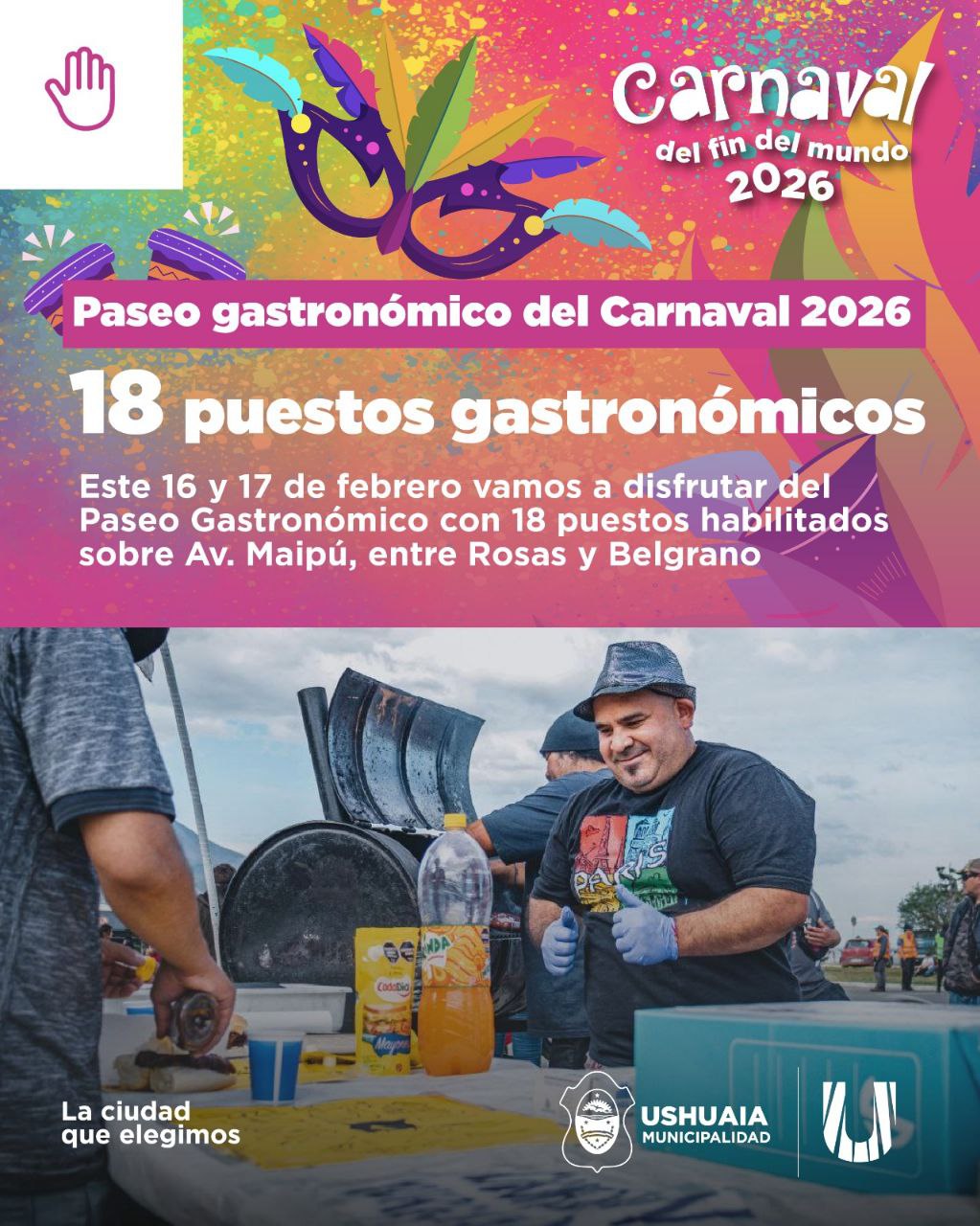Dichos puestos, que formarán el Paseo Gastronómico del Carnaval del Fin del Mundo 2026, deberán contar con la habilitación correspondiente para la actividad, quedando imposibilitados de participar del mismo en caso de no contar con la documentación.