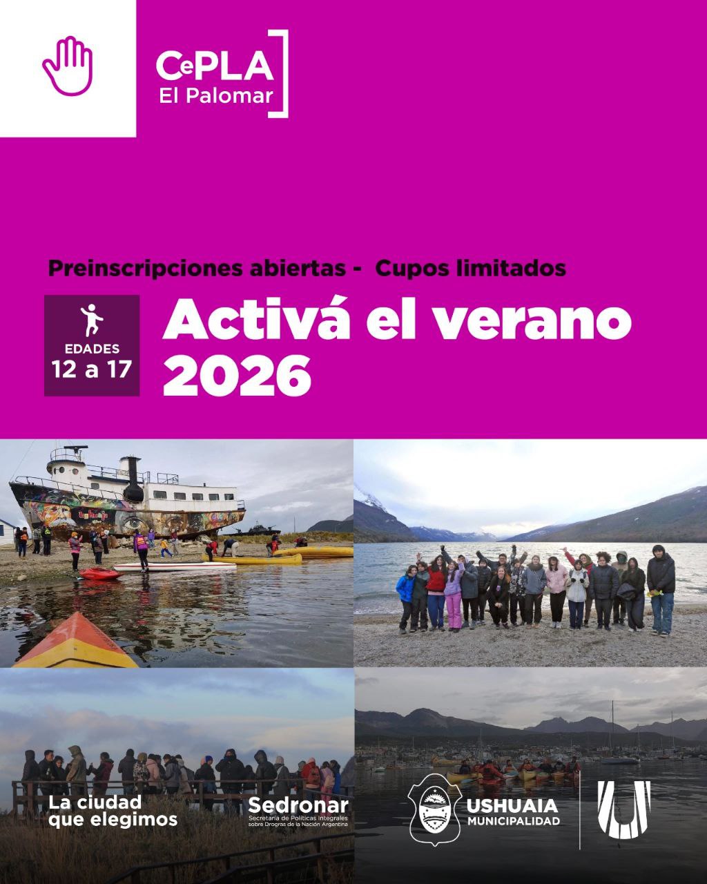 La Municipalidad de Ushuaia lanzó, a través de la Secretaría de Políticas Sociales, Sanitarias y Derechos Humanos, una nueva edición de “Activá el Verano 2026”, una propuesta gratuita destinada a adolescentes de entre 12 y 17 años, que se desarrollará en el CePLA El Palomar.