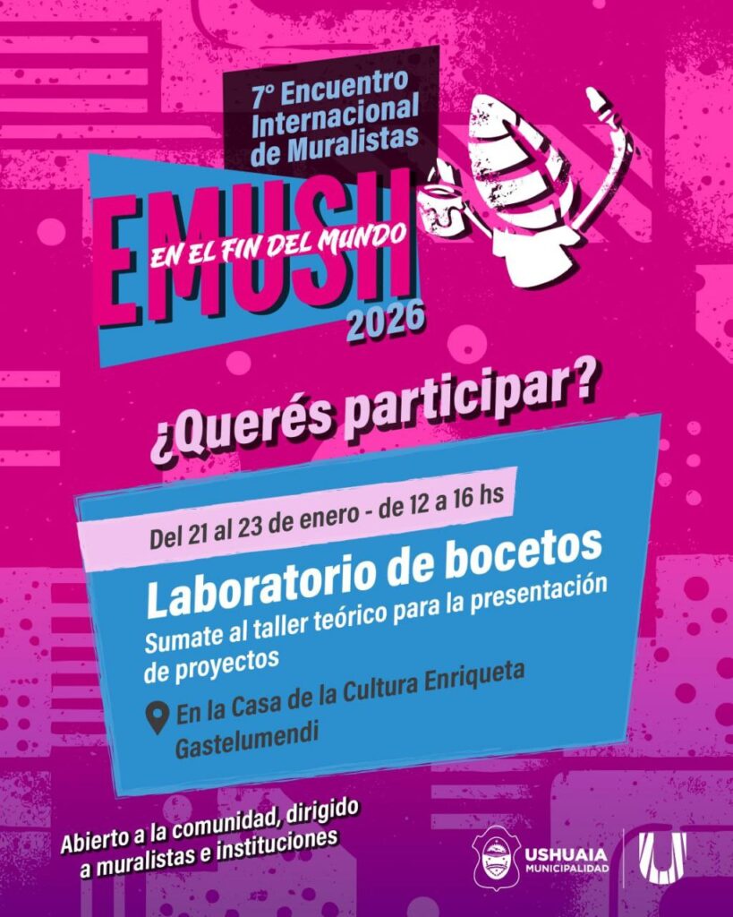 En el marco del 7° Encuentro Internacional de Muralistas en el Fin del Mundo EMUSH 2026, la Secretaría de Cultura y Educación de la Municipalidad de Ushuaia impulsará diversas iniciativas destinadas a artistas, instituciones y la comunidad en general.