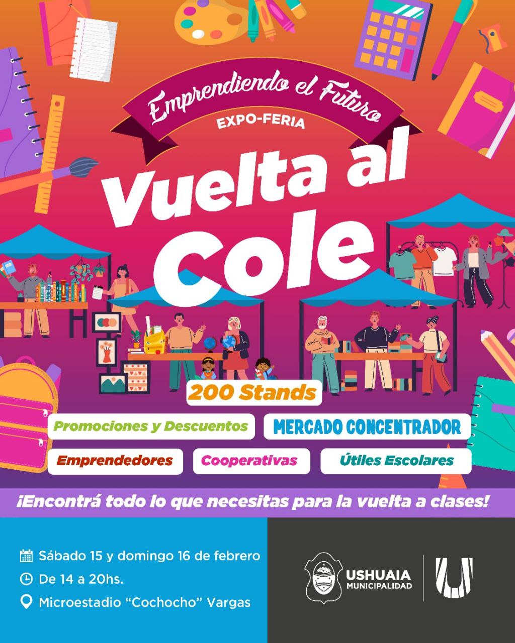 La Municipalidad de Ushuaia invita a vecinos y vecinas a participar de la Expo Vuelta al Cole, un evento pensado para acompañar a las familias en la compra de útiles escolares, indumentaria y otros artículos esenciales para el regreso a clases. Se llevará a cabo en el Microestadio Cochocho Vargas el sábado 15 y domingo 16 de febrero, de 14 a 20 horas.