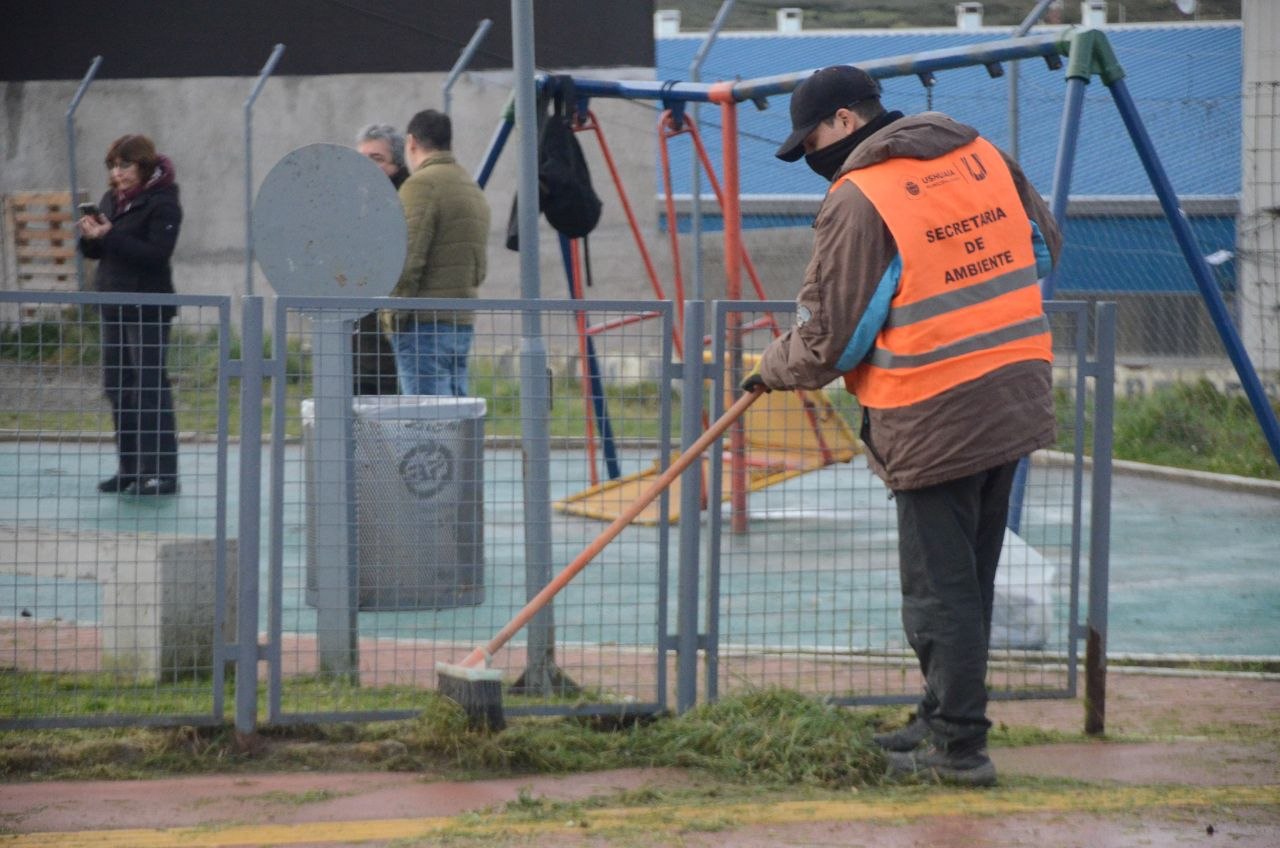 La Municipalidad de Ushuaia, a través del equipo de la Secretaría de Políticas Ambientales, Culturales y Educativas, llevó adelante con la asistencia de voluntarios y voluntarias una jornada de limpieza integral en el barrio Mirador de los Andes (640 Viviendas).