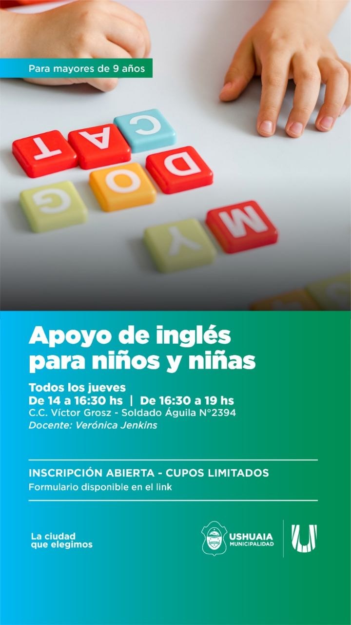 La Municipalidad de Ushuaia, a través de la Secretaría de la Mujer y Desarrollo Humano, impulsa el taller “Apoyo de Inglés para niños y niñas”, una propuesta destinada a acompañar el aprendizaje del idioma desde edades tempranas.