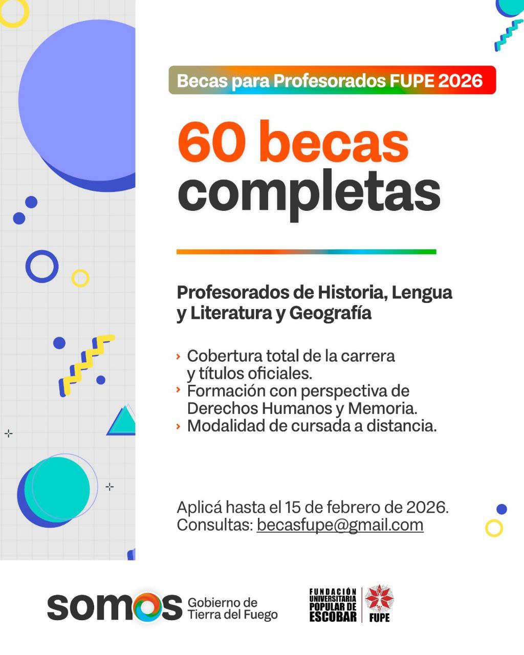 El Gobierno Provincial abrió la convocatoria 2026 a 60 becas completas para cursar los profesorados de Historia, Lengua y Literatura y Geografía, con títulos oficiales y formación con perspectiva de Derechos Humanos y Memoria.