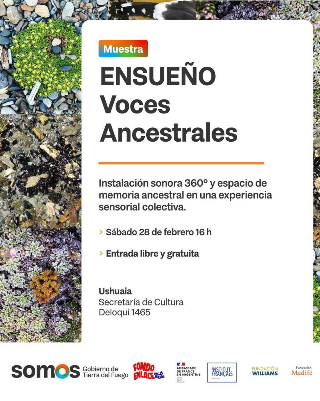 La Secretaría de Cultura invita a la comunidad a participar de “Ensueños”, una instalación sonora inmersiva que se presentará el sábado 28 de febrero de 16 a 21 horas, en la sede de la Secretaría de Cultura, ubicada en Deloqui 1465, de la ciudad de Ushuaia.