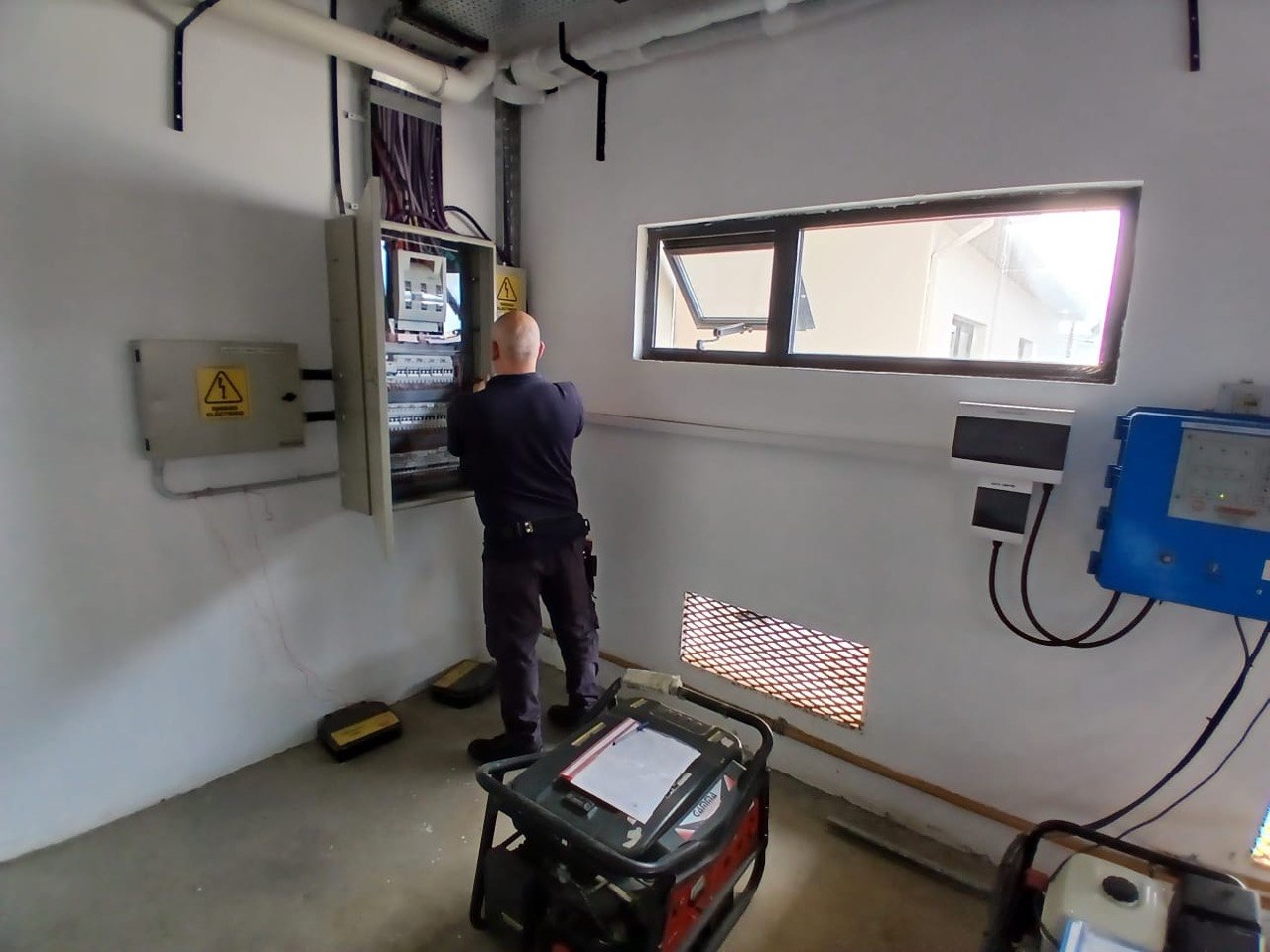 En paralelo, se realizan tareas de mantenimiento preventivo en distintas instalaciones. Entre ellas, el servicio de los tableros eléctricos, que incluye su adecuación a los requisitos técnicos establecidos por la Cooperativa Eléctrica local, con el fin de garantizar un funcionamiento seguro, especialmente del sistema de calefacción.