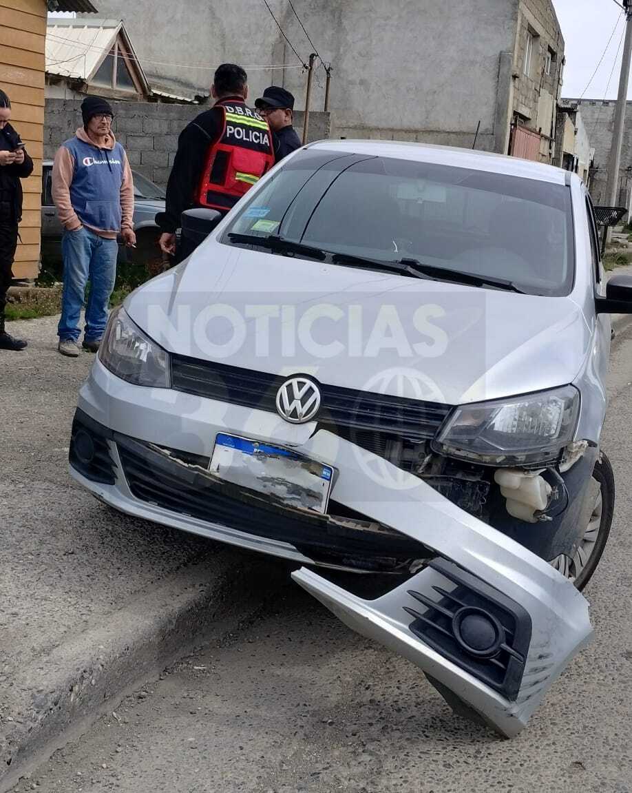 Se trata de un automovil Volkswagen modelo Gol el cual venía saliendo de su domicilio cuando una moto que se movilizaba a gran velocidad por la calle Sarmiente en sentido descendente impactó al vehículo por el lateral izquierdo provocando mucho daño material.