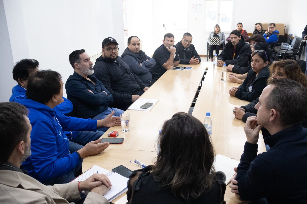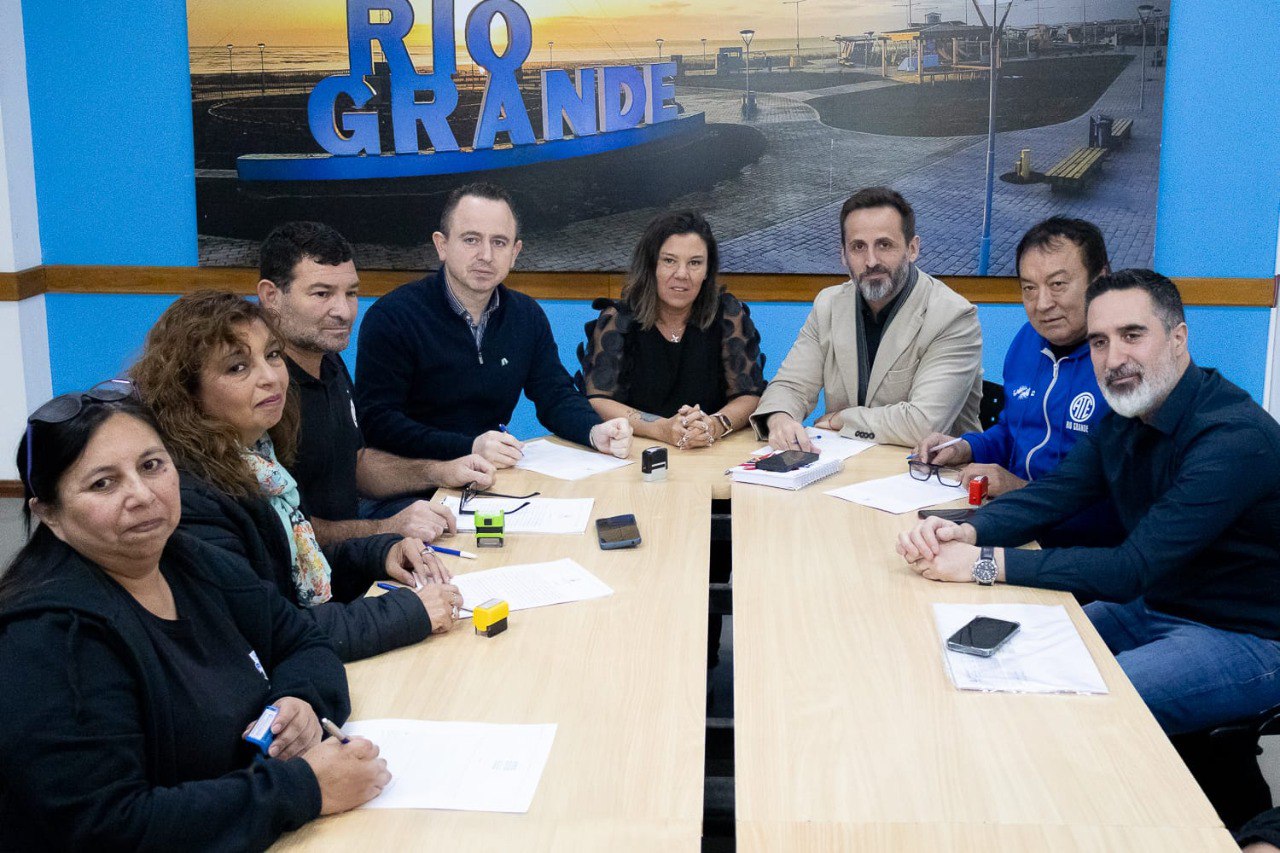 El secretario de Gobierno, Gastón Díaz, mantuvo un encuentro con representantes de las entidades gremiales ATE, UPCN, ASOEM y ATSA. También estuvo presente la secretaria de Finanzas, Valeria Capotorto y el subsecretario de Finanzas, Nicolás Giordano.
