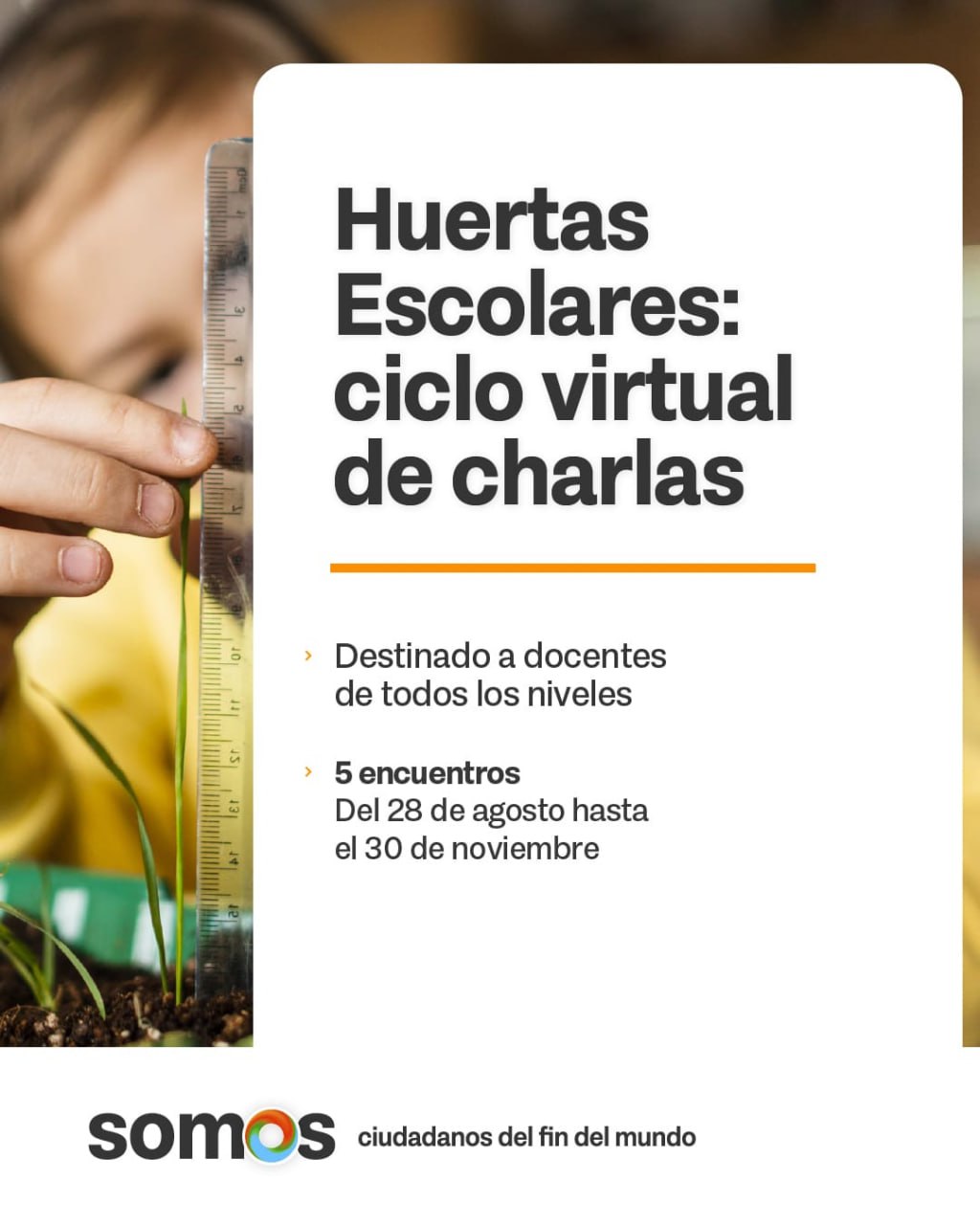 La primera charla será el jueves 28 de agosto a las 18:30 horas bajo el título “Cultivando conciencia ambiental desde el espacio de huerta de nivel inicial”, destinada especialmente a docentes de nivel inicial.