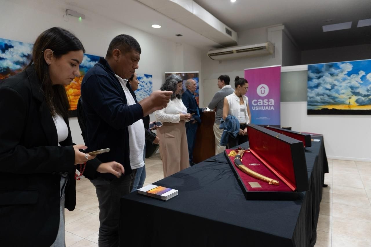 En esta oportunidad, expuso en la Casa Ushuaia junto a una réplica del sable corvo del Libertador Don José de San Martín y uno de sus icónicos bastones presidenciales.