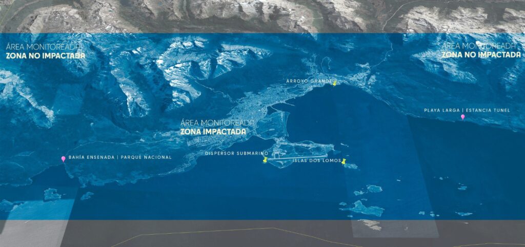 El monitoreo se realizó en las inmediaciones del Aeropuerto, en cercanías del dispersor marino e Isla Dos Lomos, y al este de la Bahía de Ushuaia en la desembocadura del Arroyo Grande.