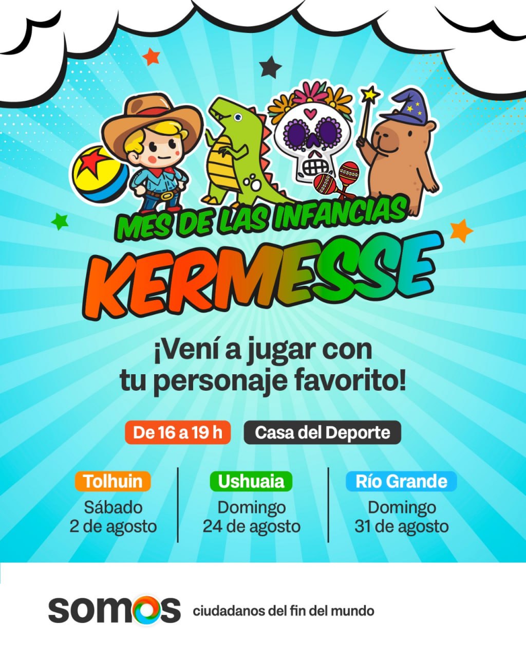 El Gobierno de la Provincia invita a las familias fueguinas a participar de la Kermesse de las Infancias, una propuesta pensada para pasar una tarde llena de magia, diversión y sorpresas.